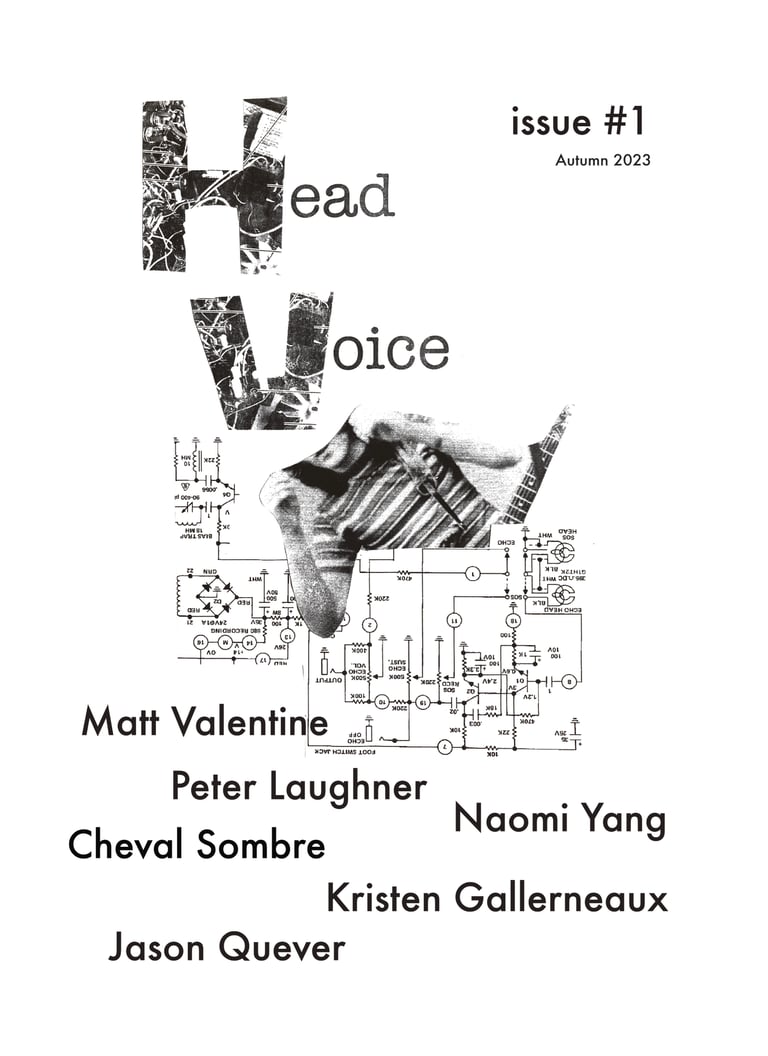 The debut issue of Head Voice, featuring Matt Valentine, Peter Laughner, Naomi Yang, Cheval Sombre, Kristen Gallerneaux, & Jason Quever.
